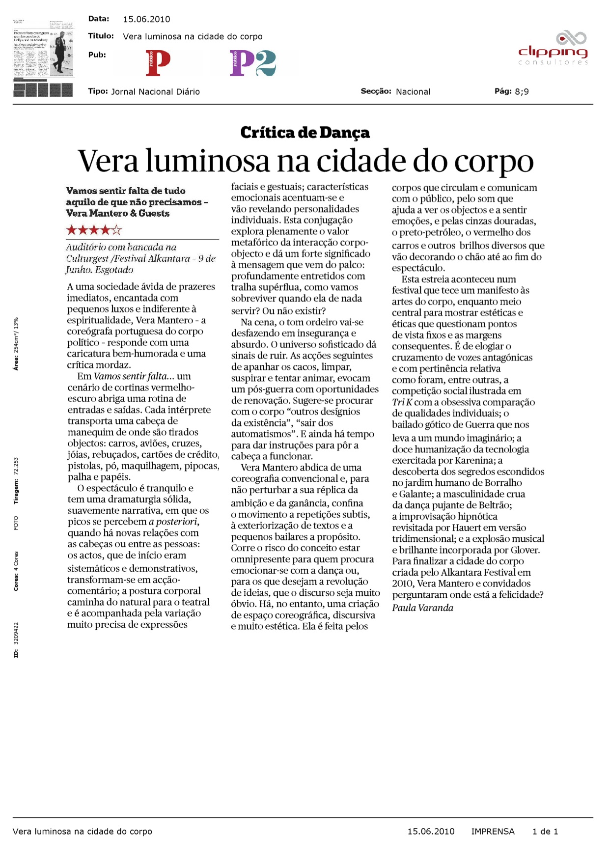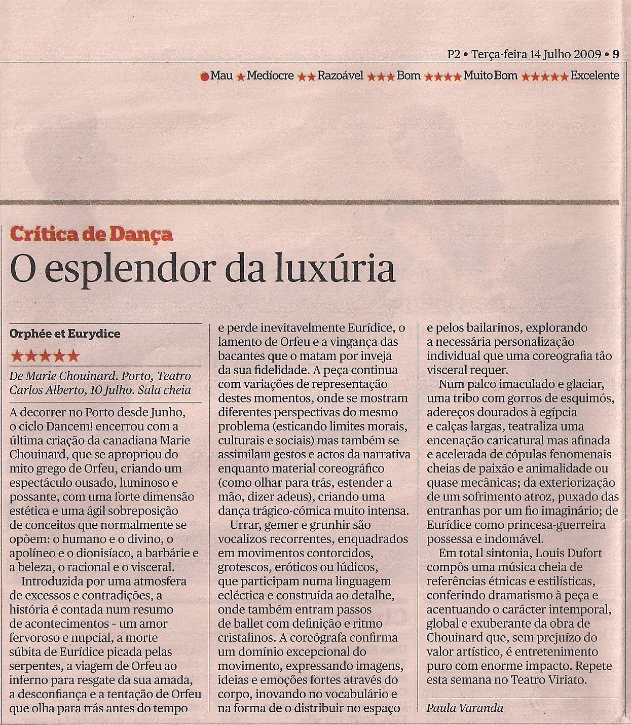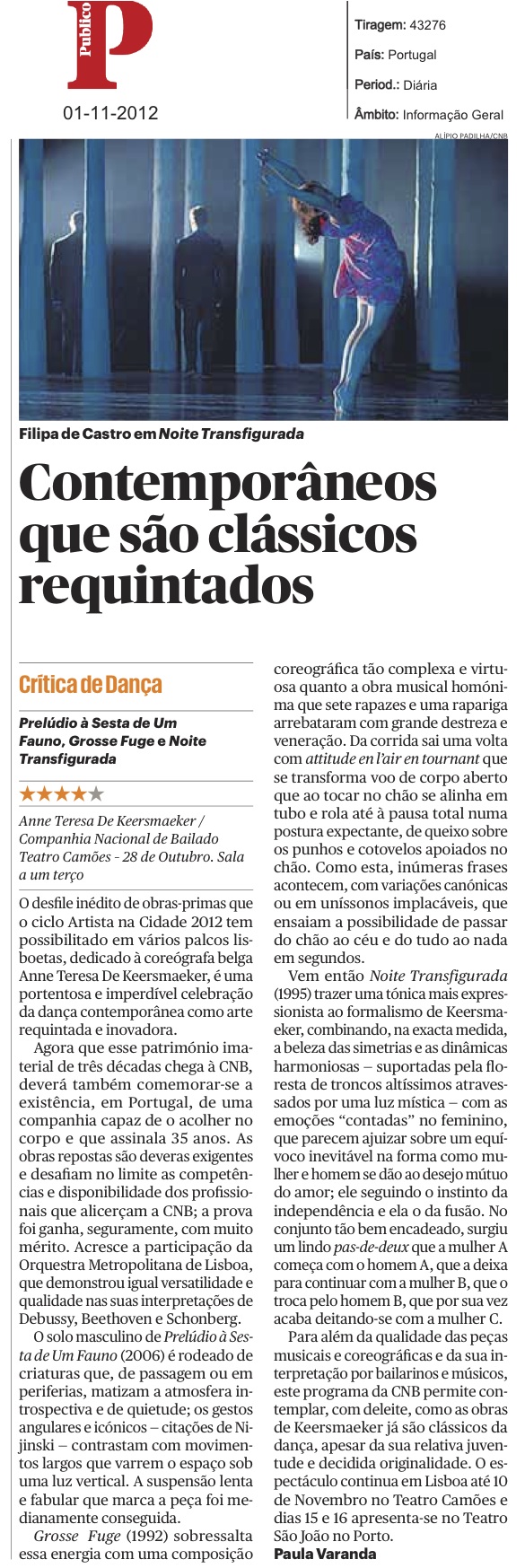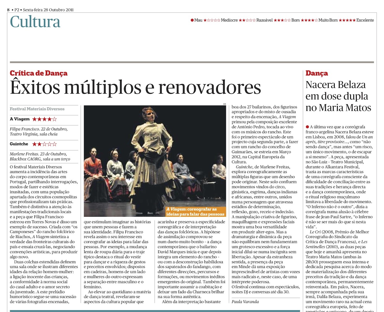 This is the work I have done as a dance critic, for the Portuguese newspaper Público, since 2004. All the pieces that I reviewed are listed below. Some have links to the Portuguese published texts. For a selection of articles with full text attached in English go to Reviews – English